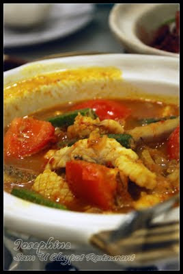 We ordered, Fried Bean Curd with Assorted Eggs, very yummy. Smooth and savoury with the different eggs hidden in the bean curd. Assam seafood is different from the normal ones as this is less sour and hot. Just nice for people like me which do not favour spicy that much. Next came our Stewed Pork with Red Wine. Tasted a little like the vinegar pork but with very less gravy in comparison. Tasted good though. Then the vegetables which came as a recommendation from the waitress was a little dissapointment to me. Nice name but a little pricey for it tasted exactly like "Tang Hou" which was used for steamboat.