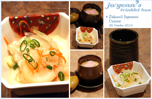Zakuro 2, established in 1997. The Zakuro name holds more than 10 years of experience in Japanese cuisine. Opened in 2004, Zakuro 2 is a contemporary Japanese restaurant set amidst the bustling streets of Kuala Lumpur. Using our years of experience, we survive only the best of authentic yet innovative Japanese cuisineAnyway, secluded in the same building of Seasons and Tai Thong next to Ampang Park. The environment changes as you walks into the restaurant. Feeling quiet and calm. It seems it has transported you away from the bustling traffic outside. We were greeted by a very friendly captain. Shown into our room for the six of us. We were swiftly served with towel, a cold dish appetizer and Ocha.